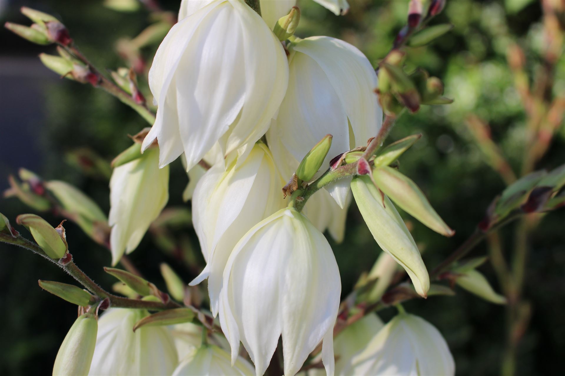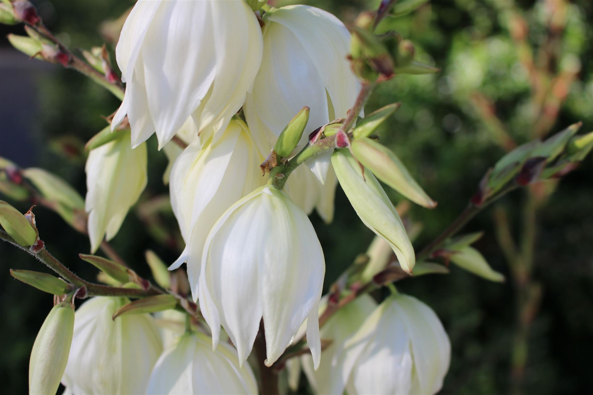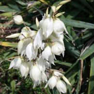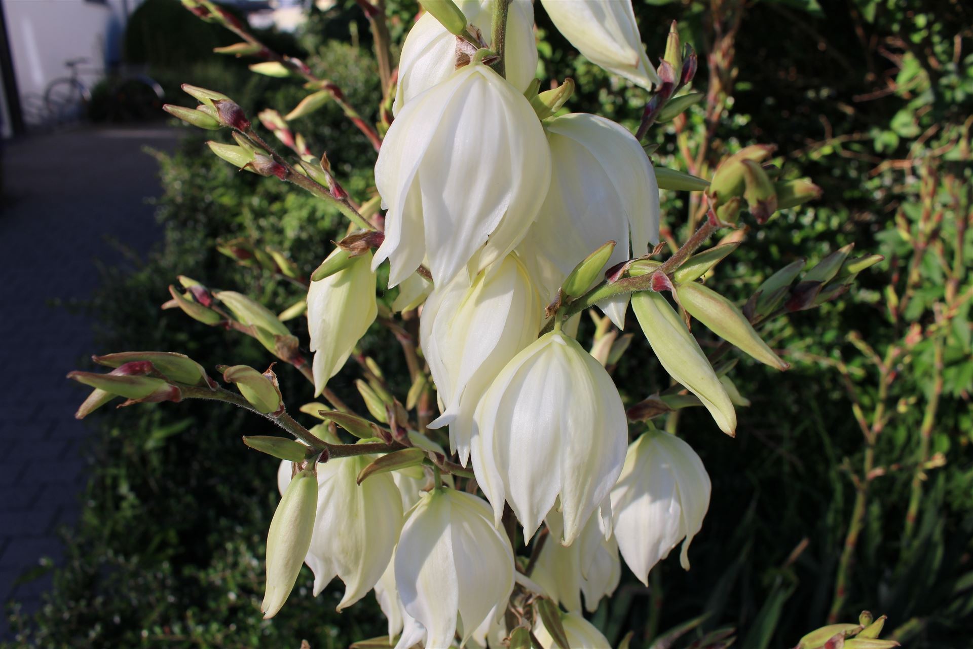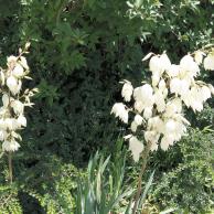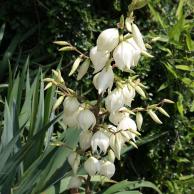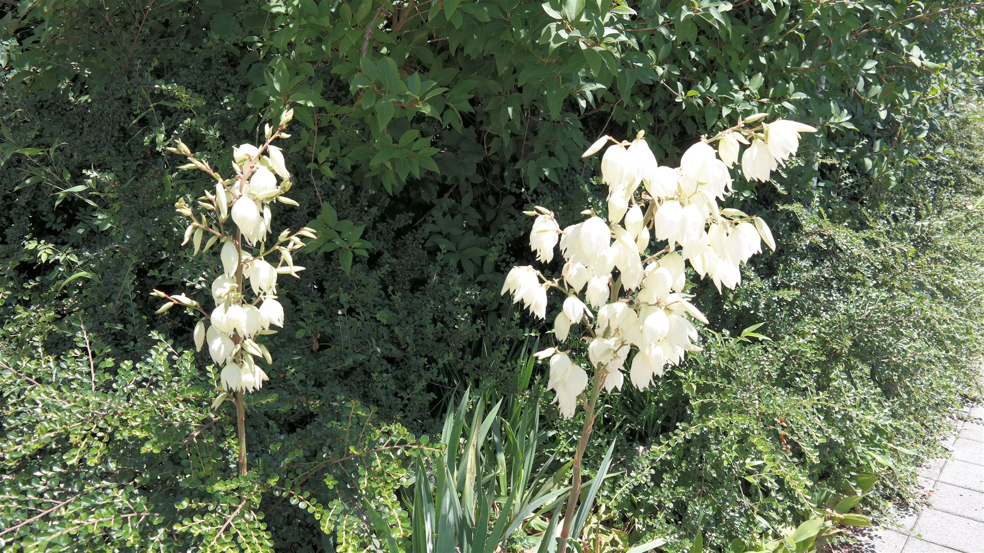 Es handelt sich hier um eine Yucca-Art und nennt sich "Graue Palmlilie".