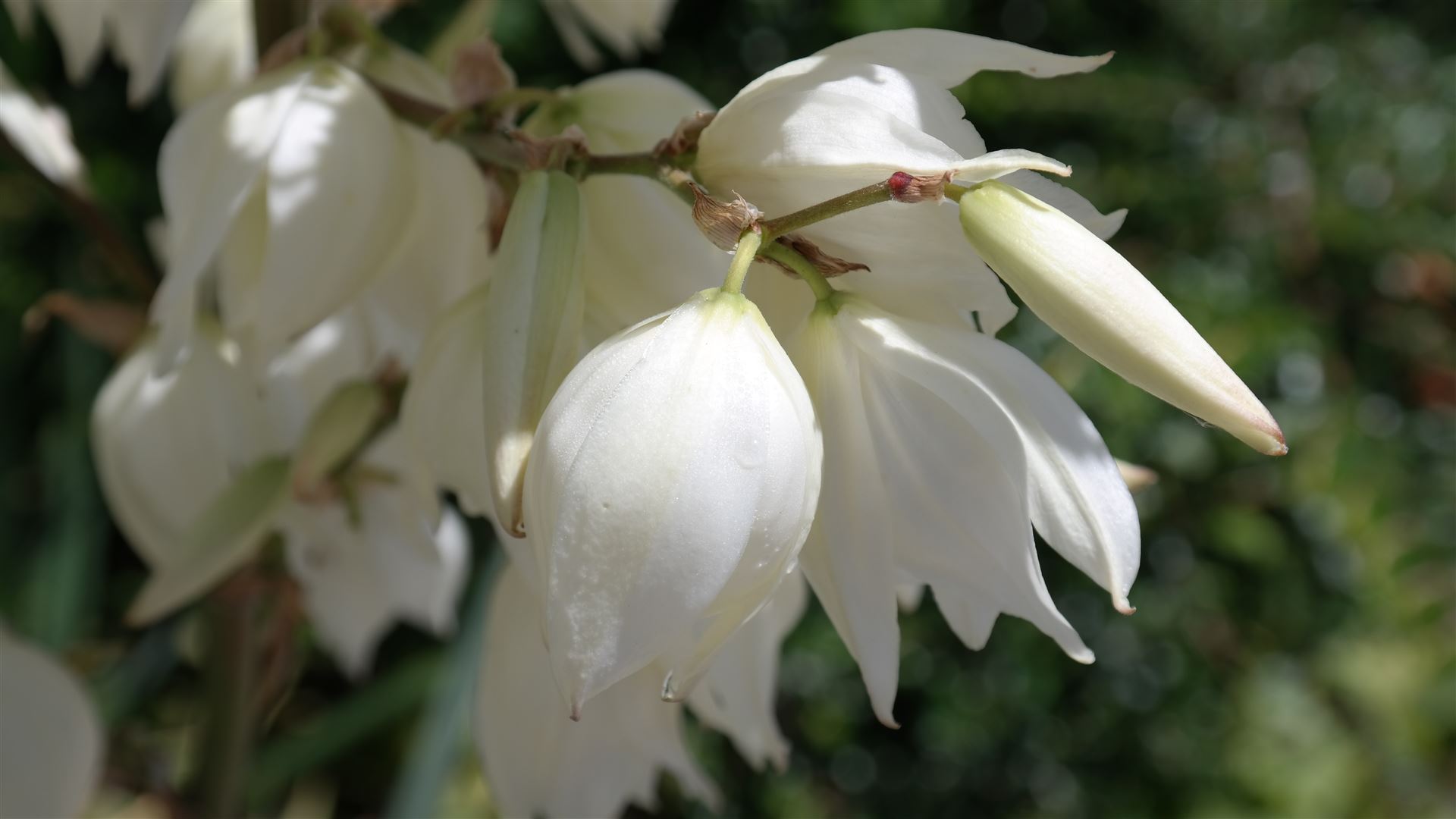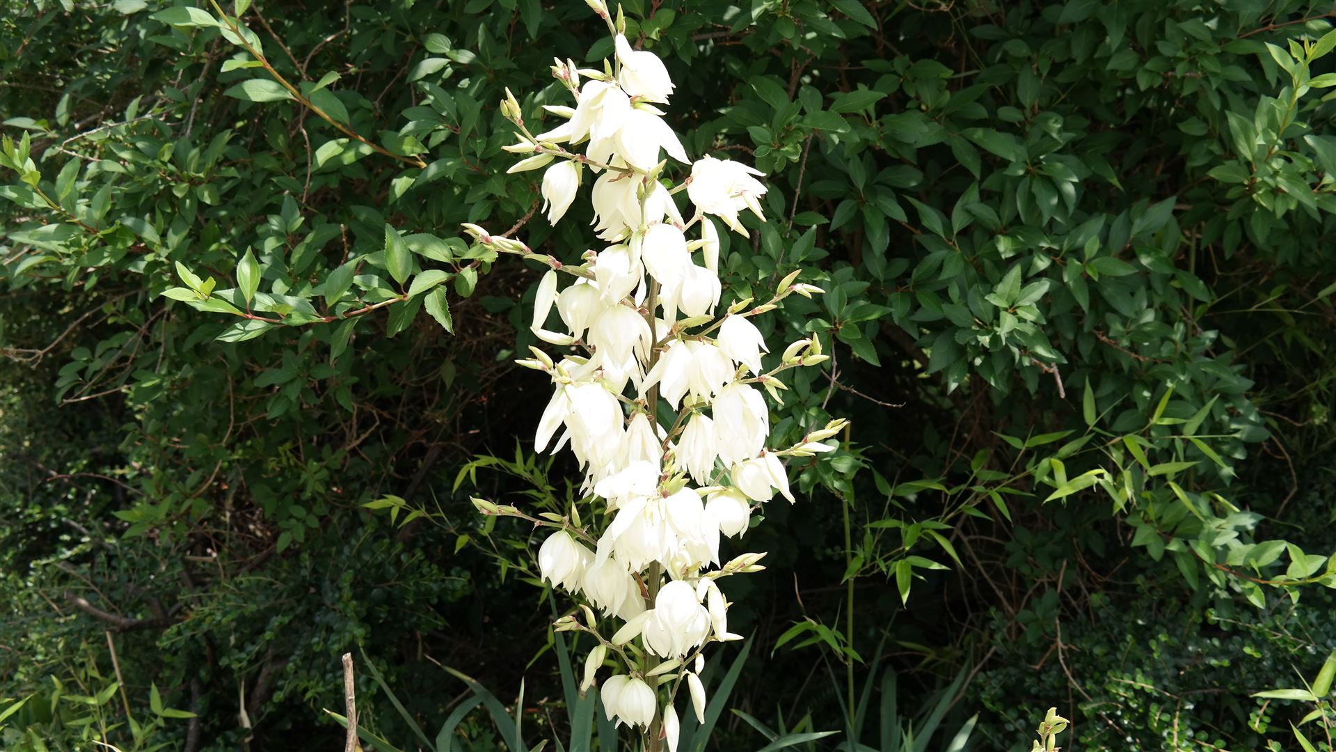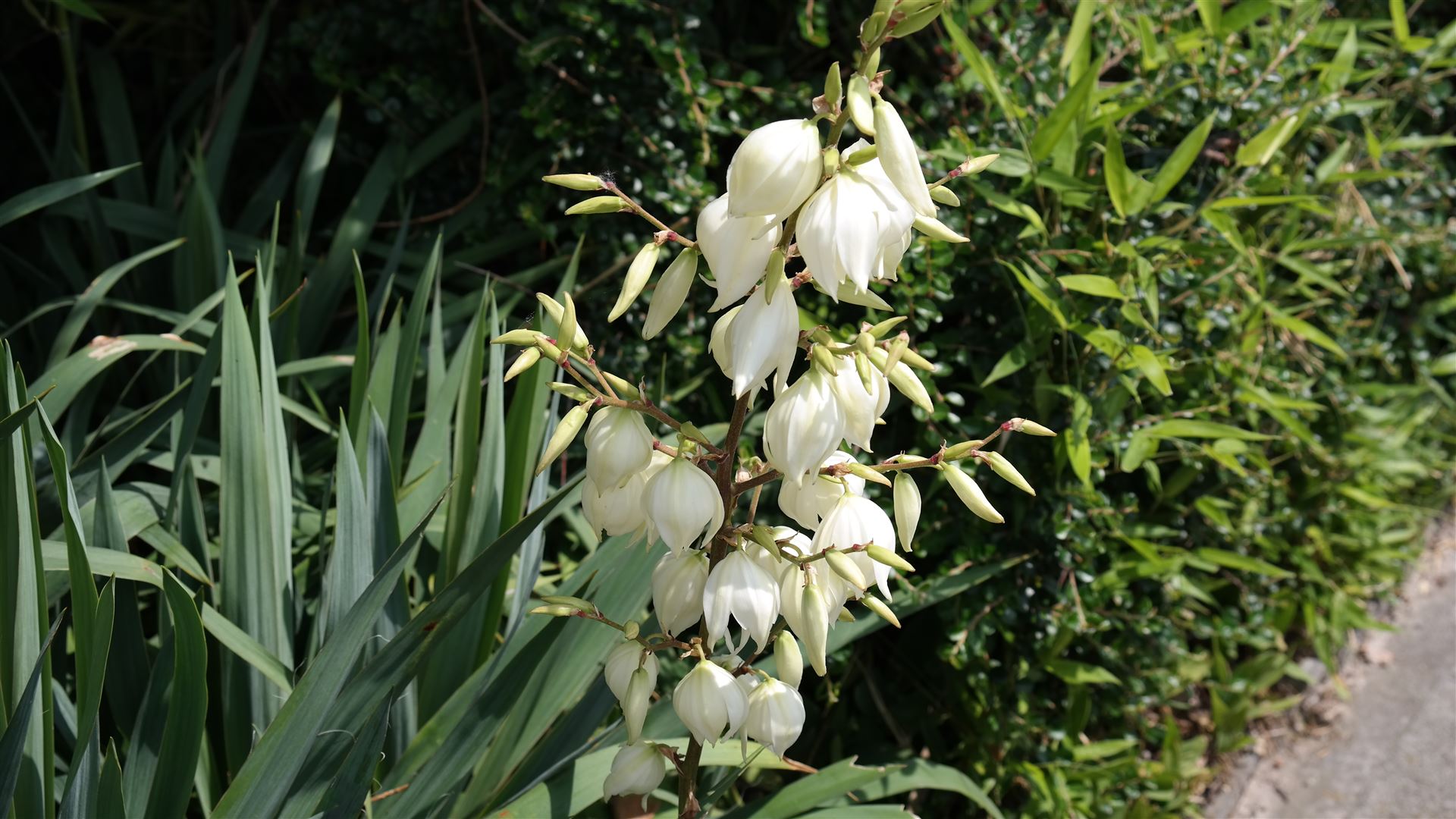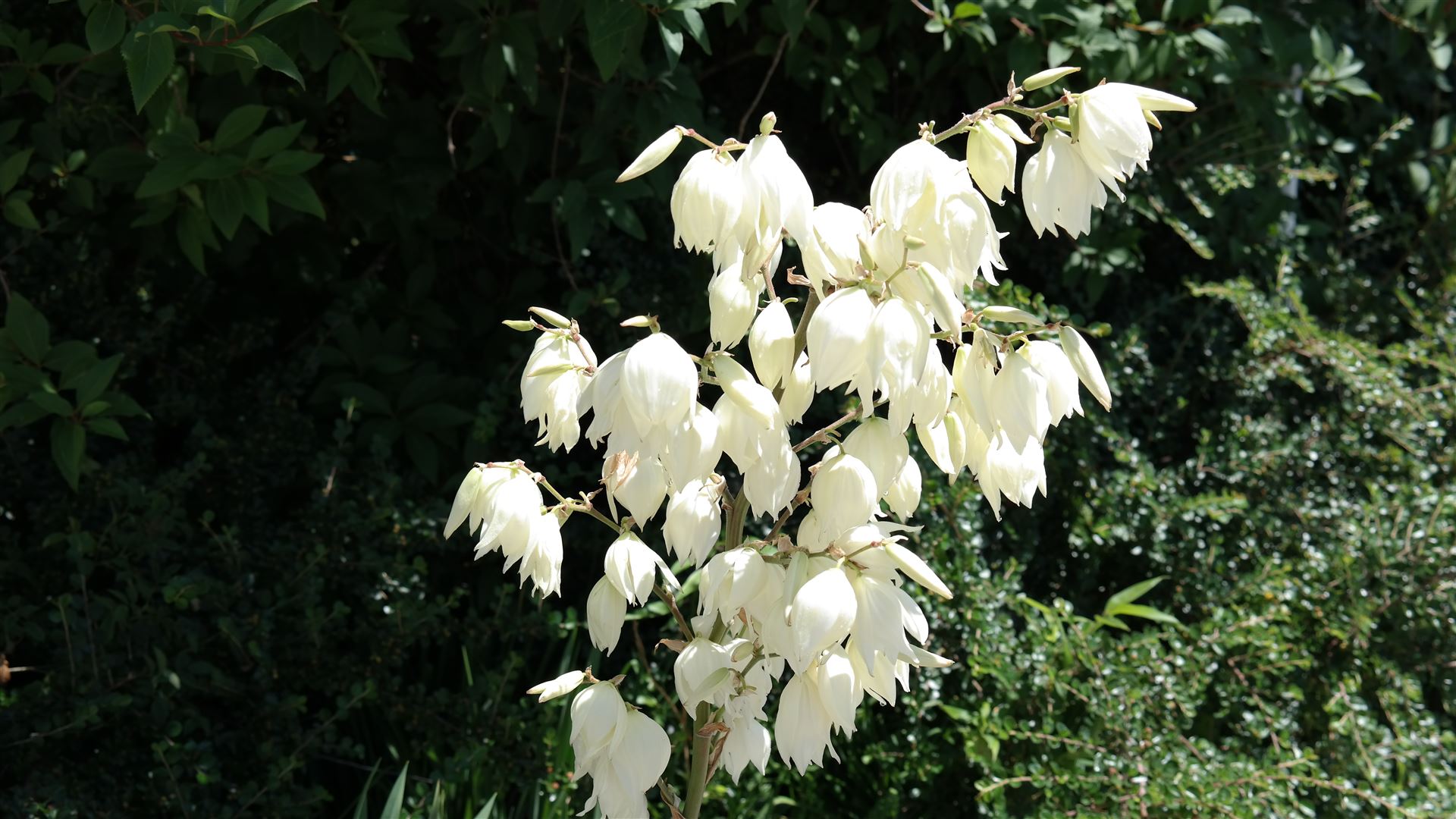 Es handelt sich hier um eine Yucca-Art und nennt sich "Graue Palmlilie".