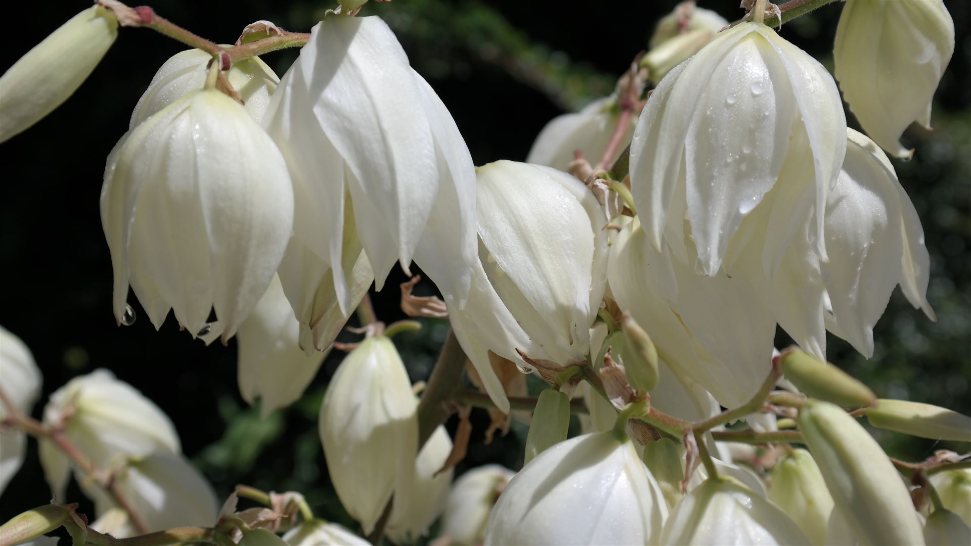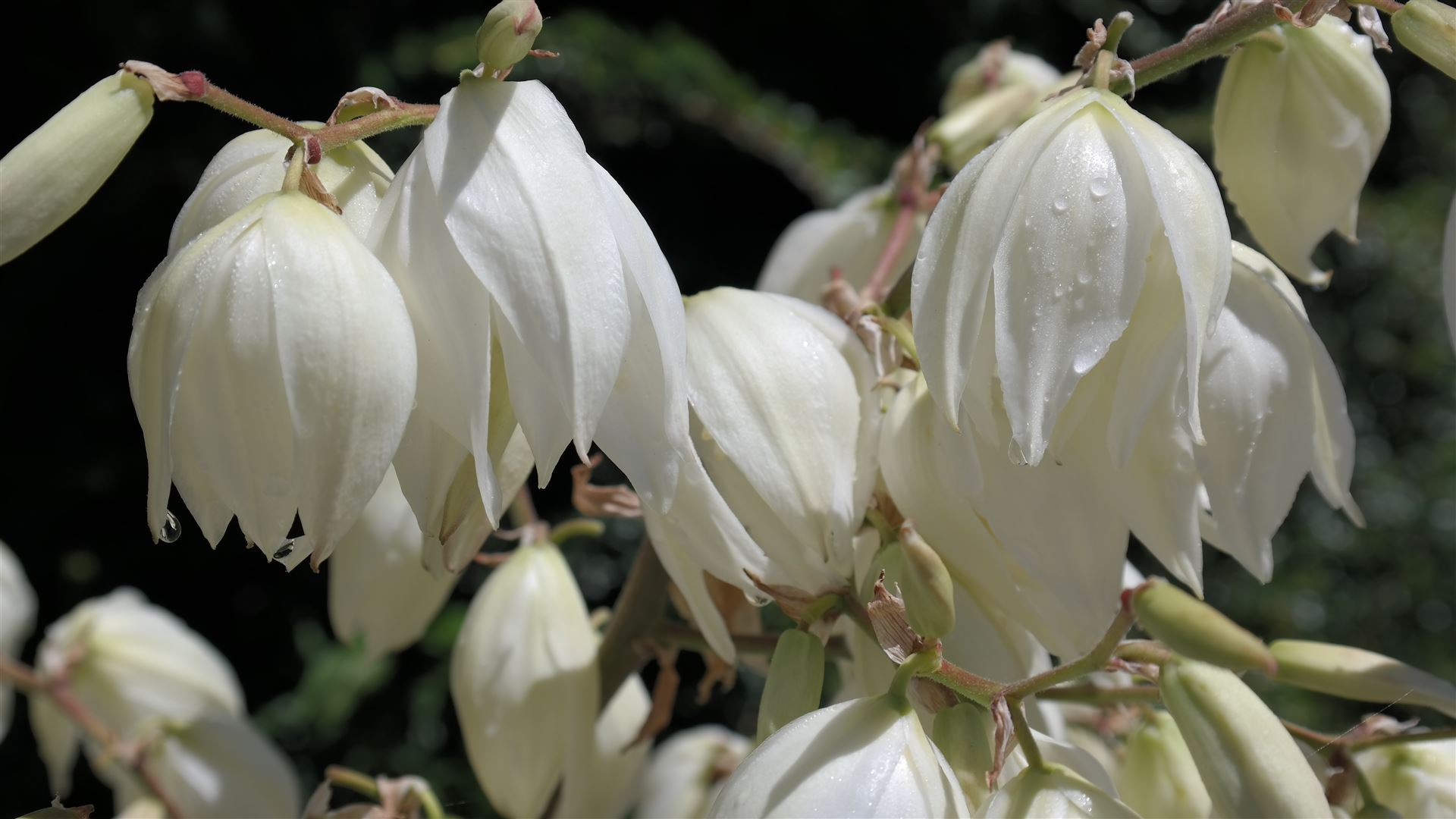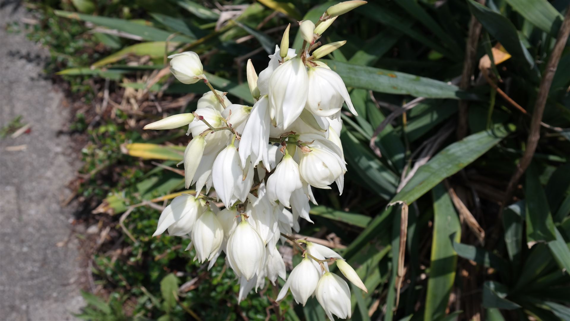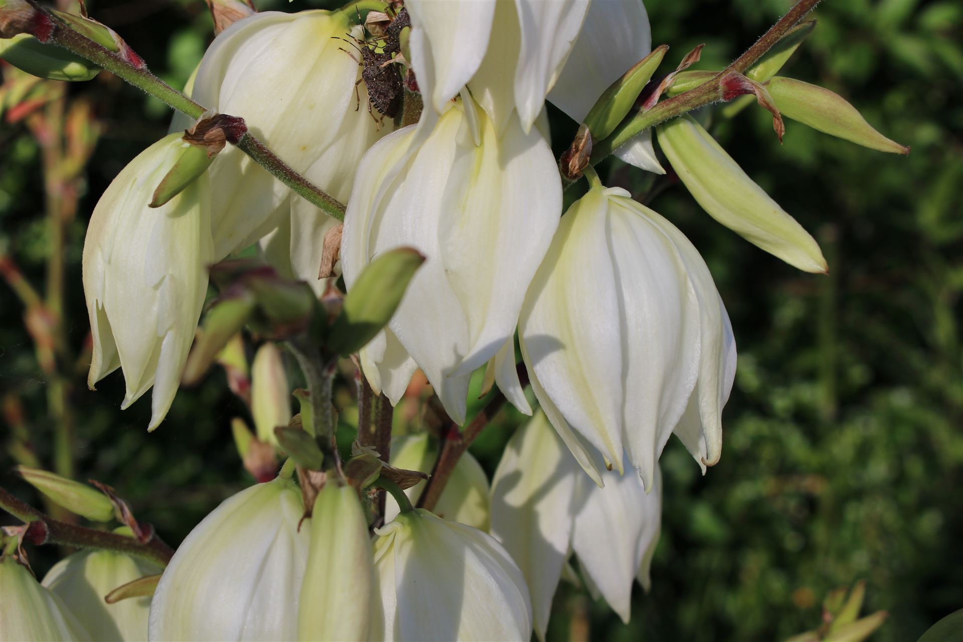 Es handelt sich hier um eine Yucca-Art und nennt sich "Graue Palmlilie".